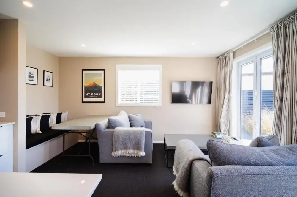 More information about Stay at 2AMountain Vista Retreat - Apartment 1 offers modern living spaces designed for comfort. The apartment features essential amenities including free parking and wireless internet access. Guests can enjoy proximity to local attractions such as Fishtail at 1.1 kilometers away, Top Hut Bar & Bistro also within 1.1 kilometers, and Mount Cook National Park located 15 kilometers distant.